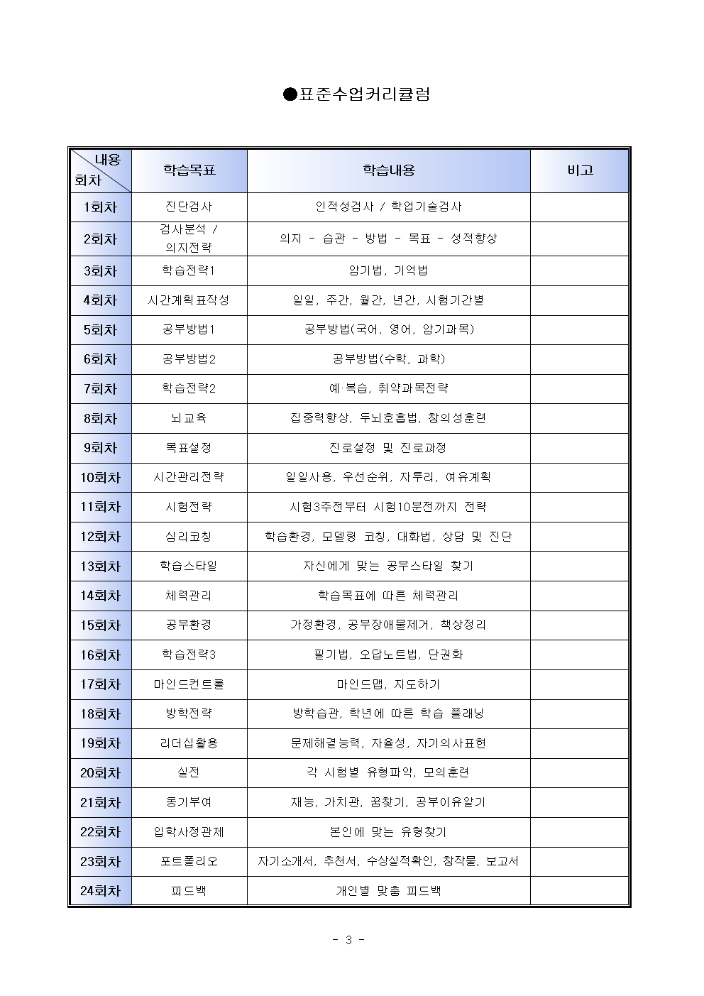 수업 커리큘럼 예시입니다.