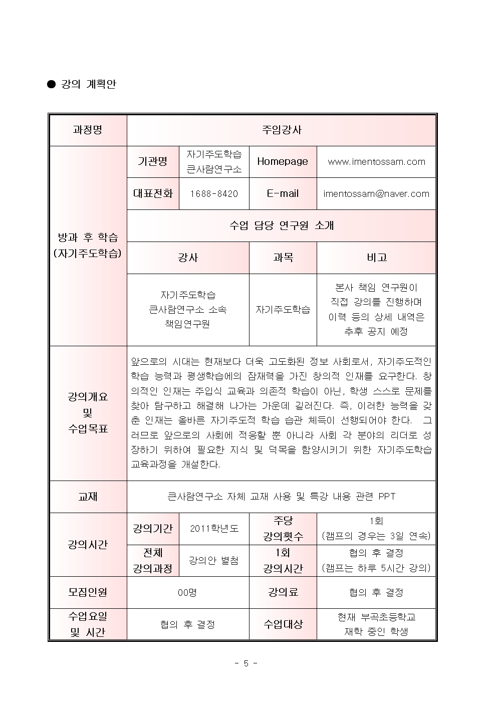 | 면북 초등학교 자기주도학습 강의 기획안 (0) | 2019.06.19 |