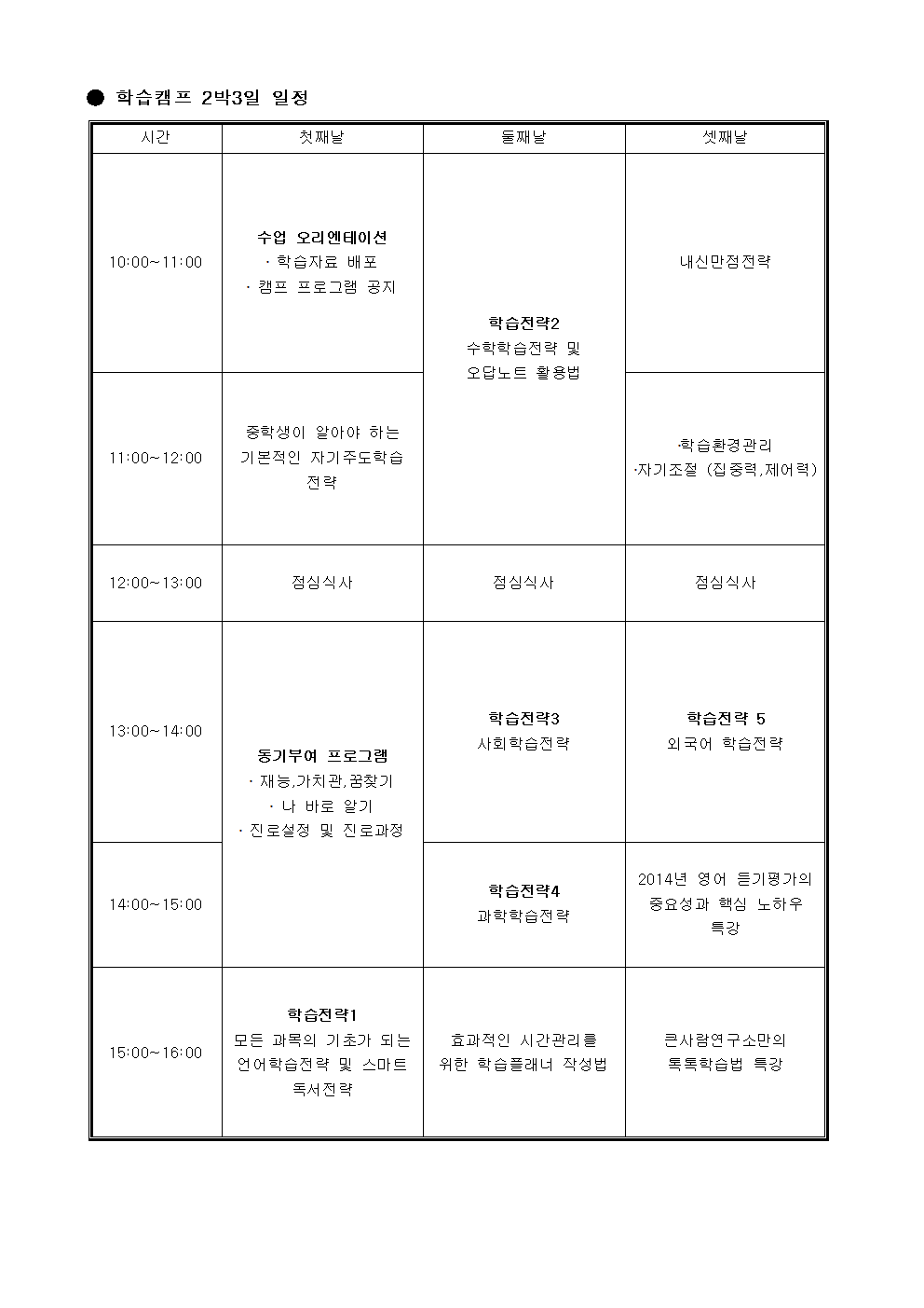 캠프 진행 프로그램안입니다.