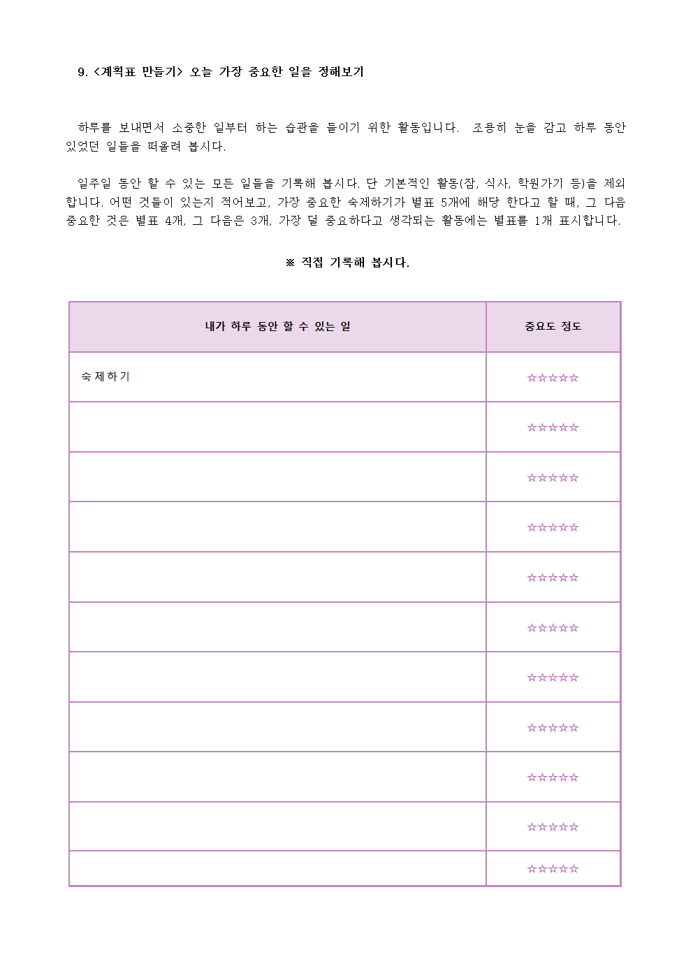 초등학교 캠프 통합 수업자료 시간관리 해보기 입니다.