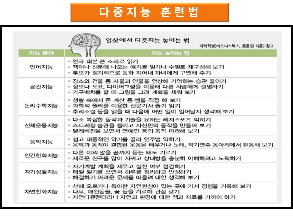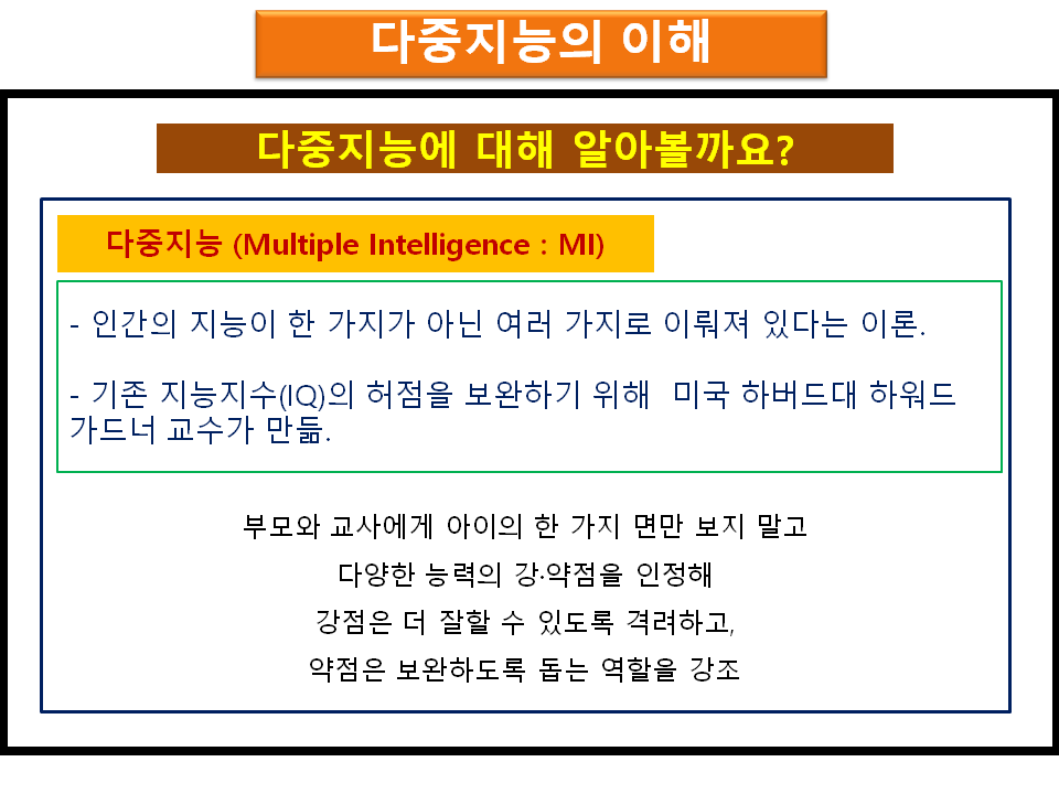 학습자들의 인성, 진로 검사 중 가장 쉽게 자가 체크가 가능한 다중지능검사에 대한