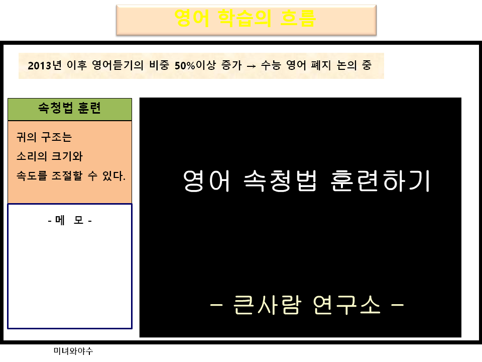 영어 학습법 중 듣기 속도를 조절하여 빠른 리스닝을 유도하는 속청법 관련 자료입니다.