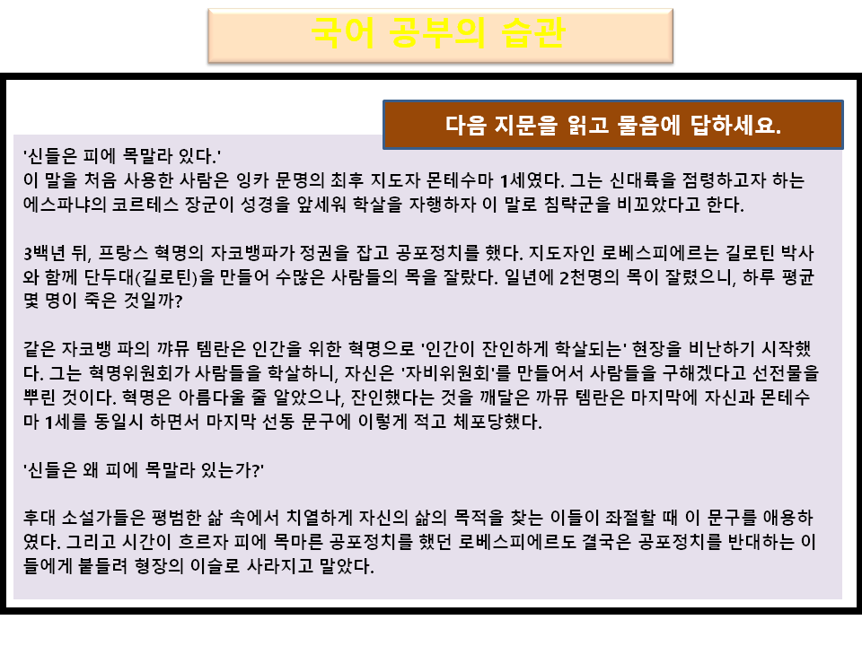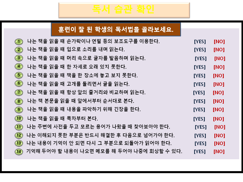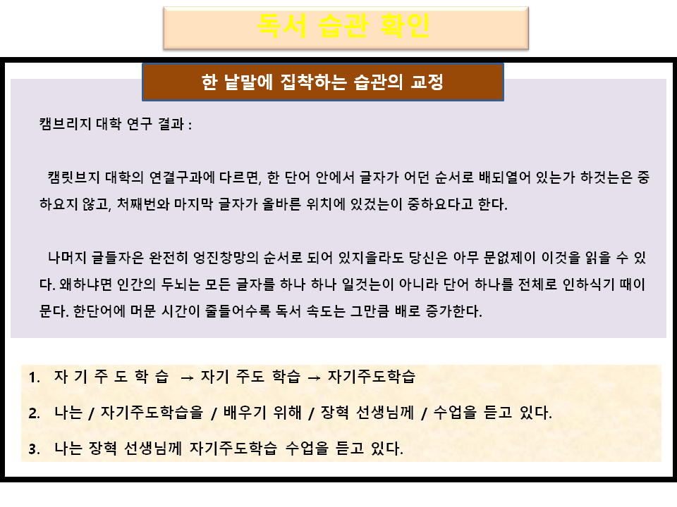 국어 학습법 중 속독 및 지문 분석 전략 관련 수업 교안입니다.