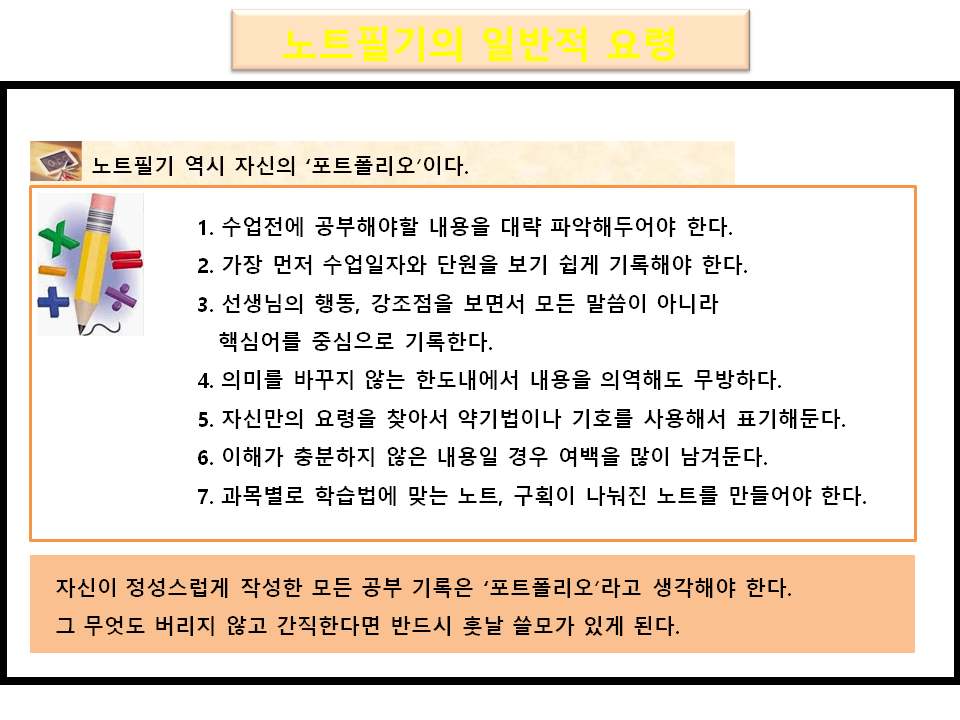 중고생 노트필기와 관련된 포트폴리오 제작 수업 교안입니다.