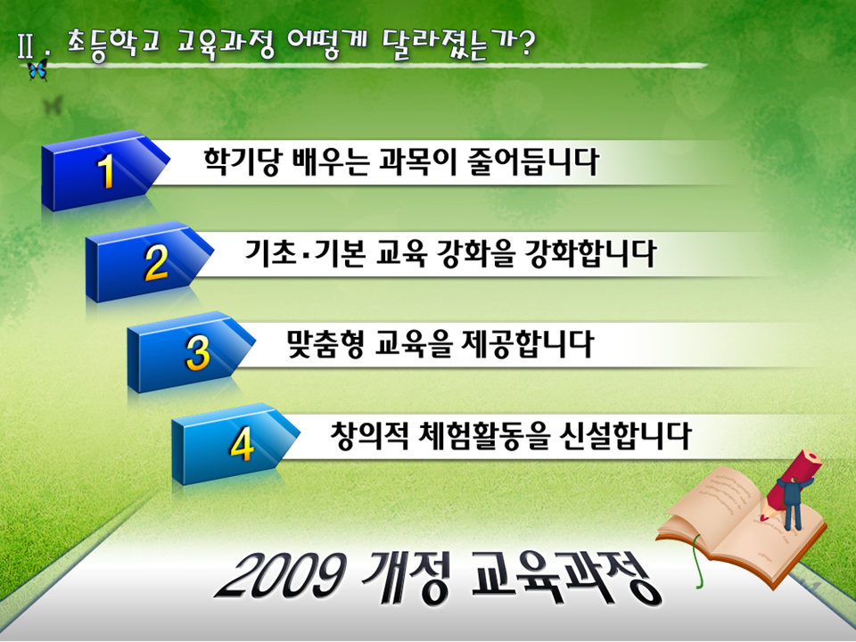 2009 개정 교육과정 및 그 이후의 교육부 지침서입니다.
