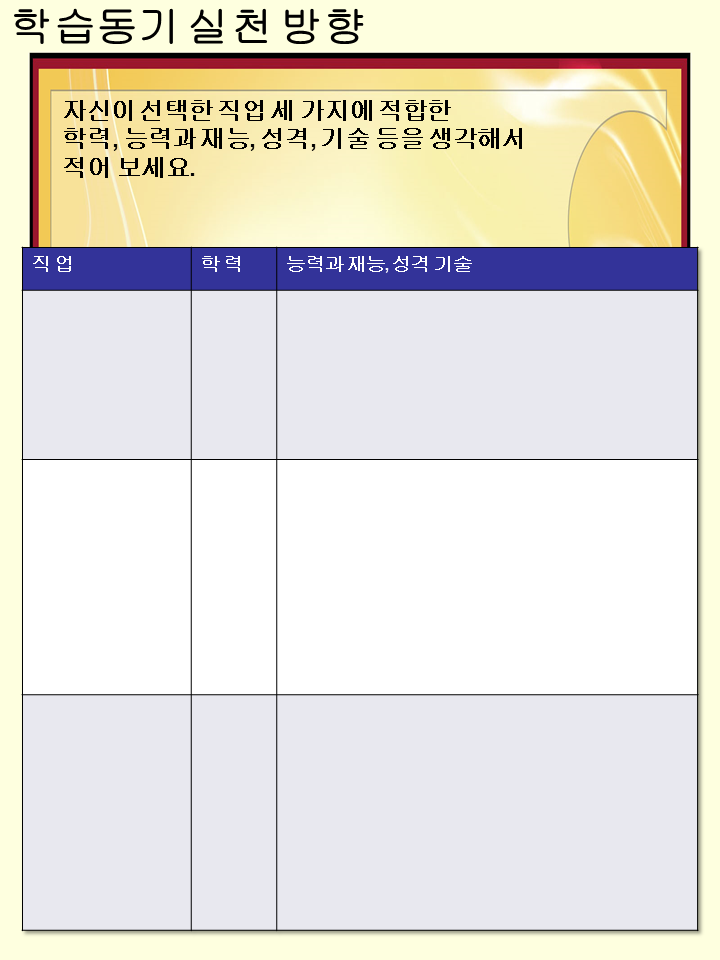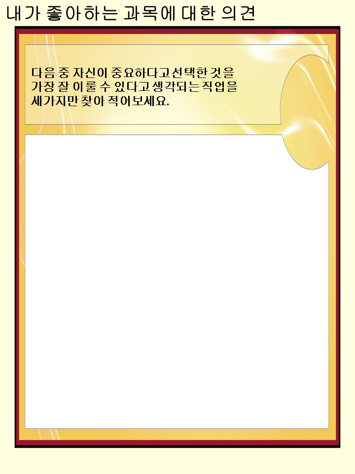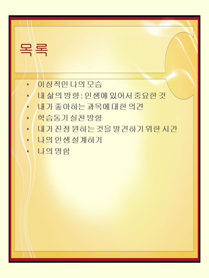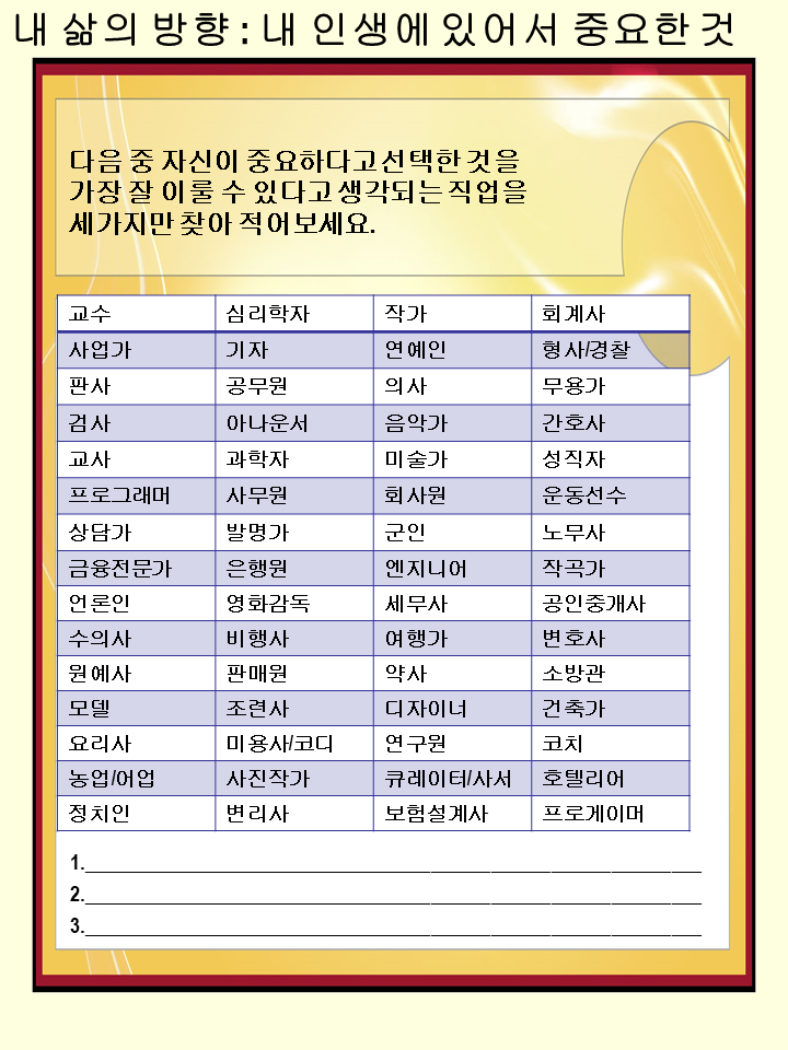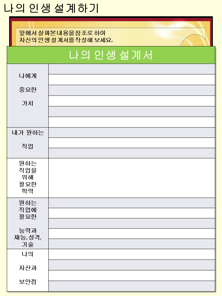 앞으로의 내 미래의 방향에 대해 한번 생각할 수 있는 시간을 가지게되는 유익한 자료입니다^^!