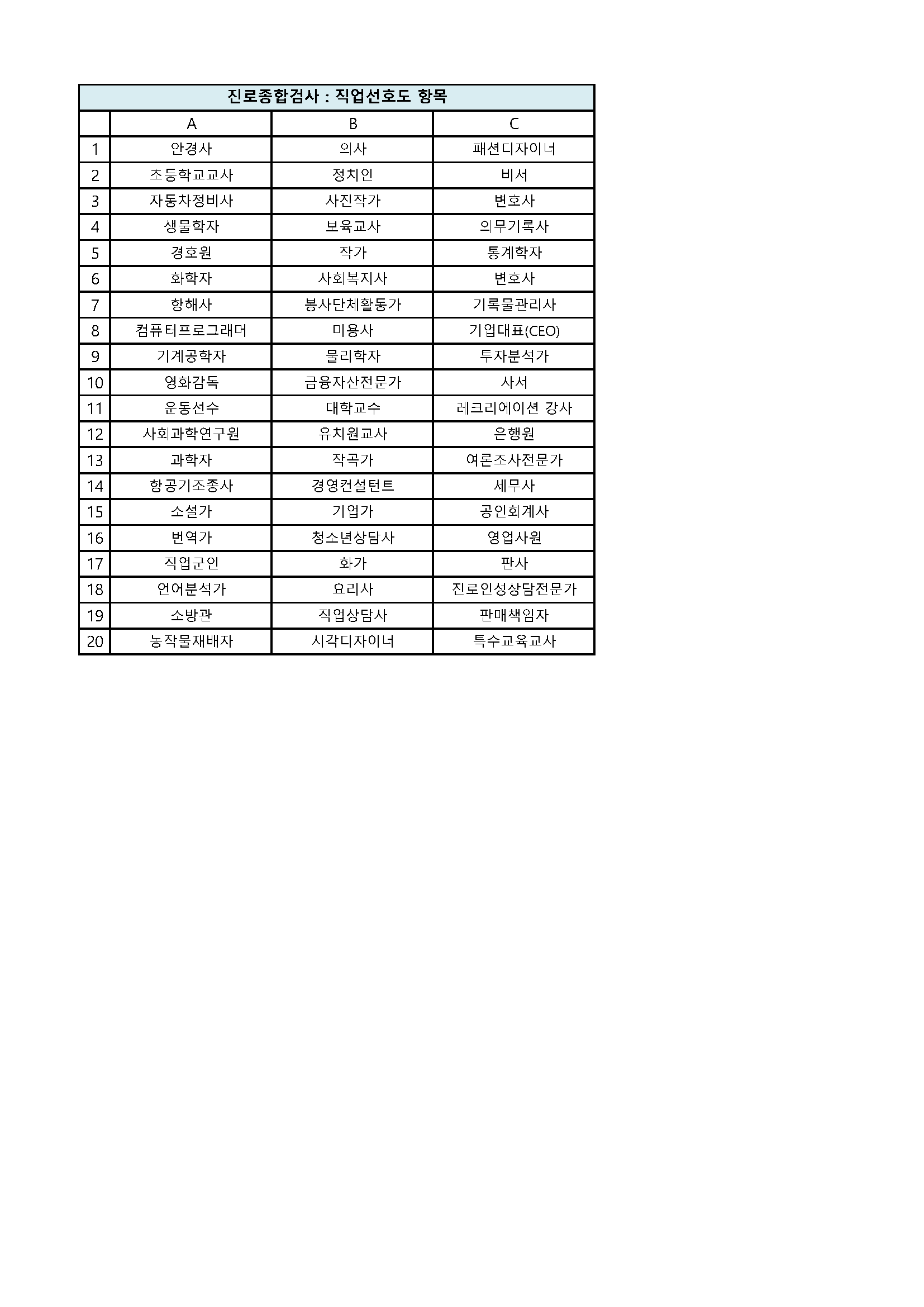 진로종합검사의 기본 소스가 되는 기본 평가 항목의 다음과 같으며,