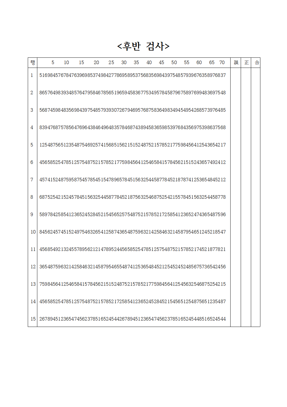 앞 숫자와 뒷 숫자를 연결하여 과업을 해결하면서 주어진 답을 빠르게 찾아내고 오류를 최소화하는 것이 관건인 검사지입니다.