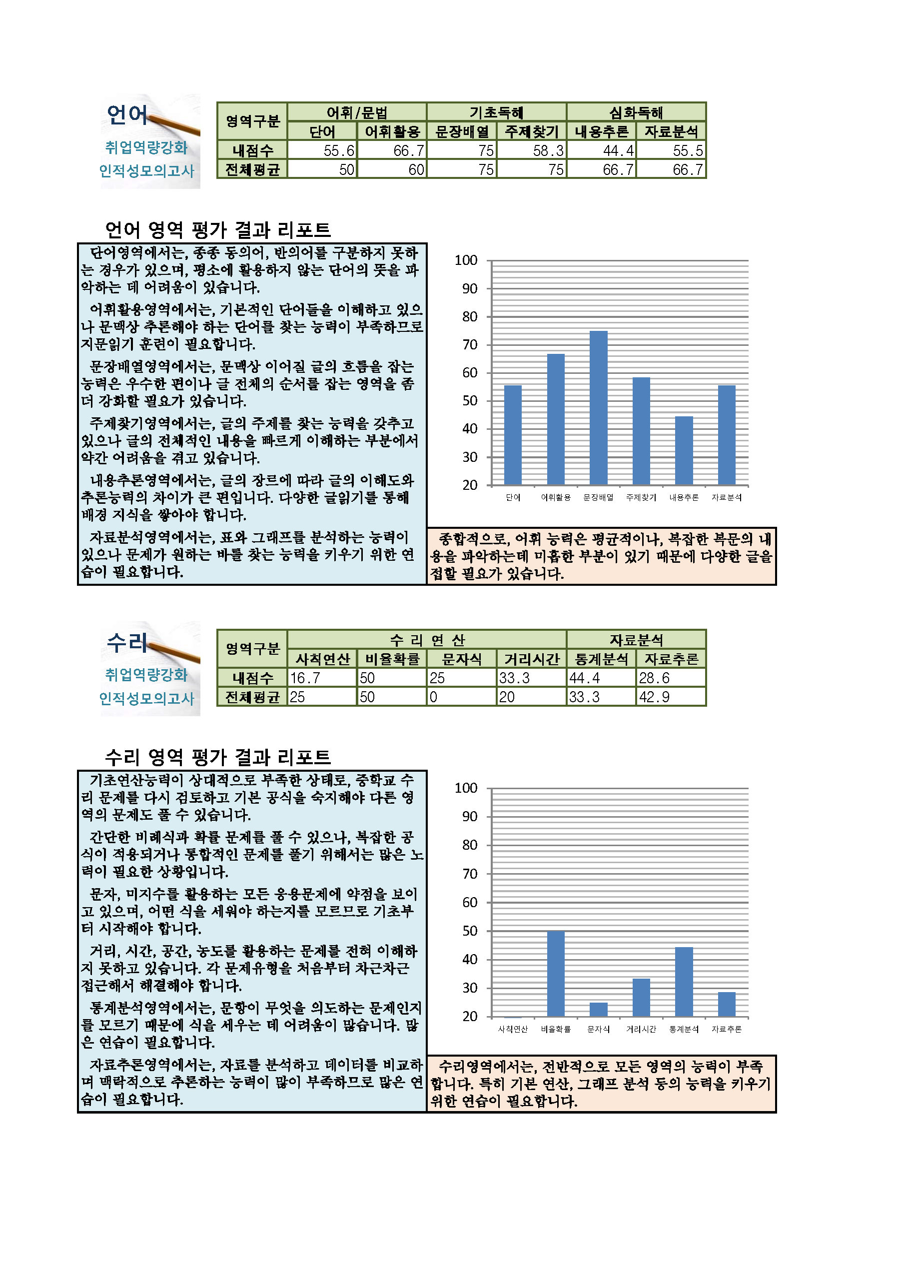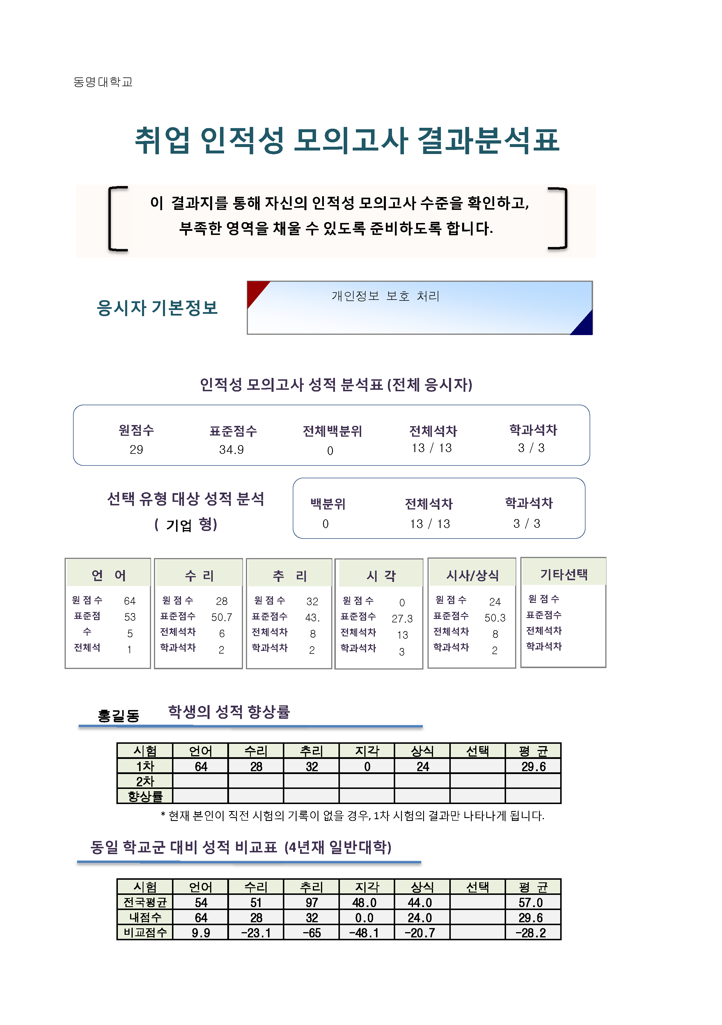 동명대학교에서 진행한 취업인적성 모의고사의 결과분석표 샘플 파일입니다.
