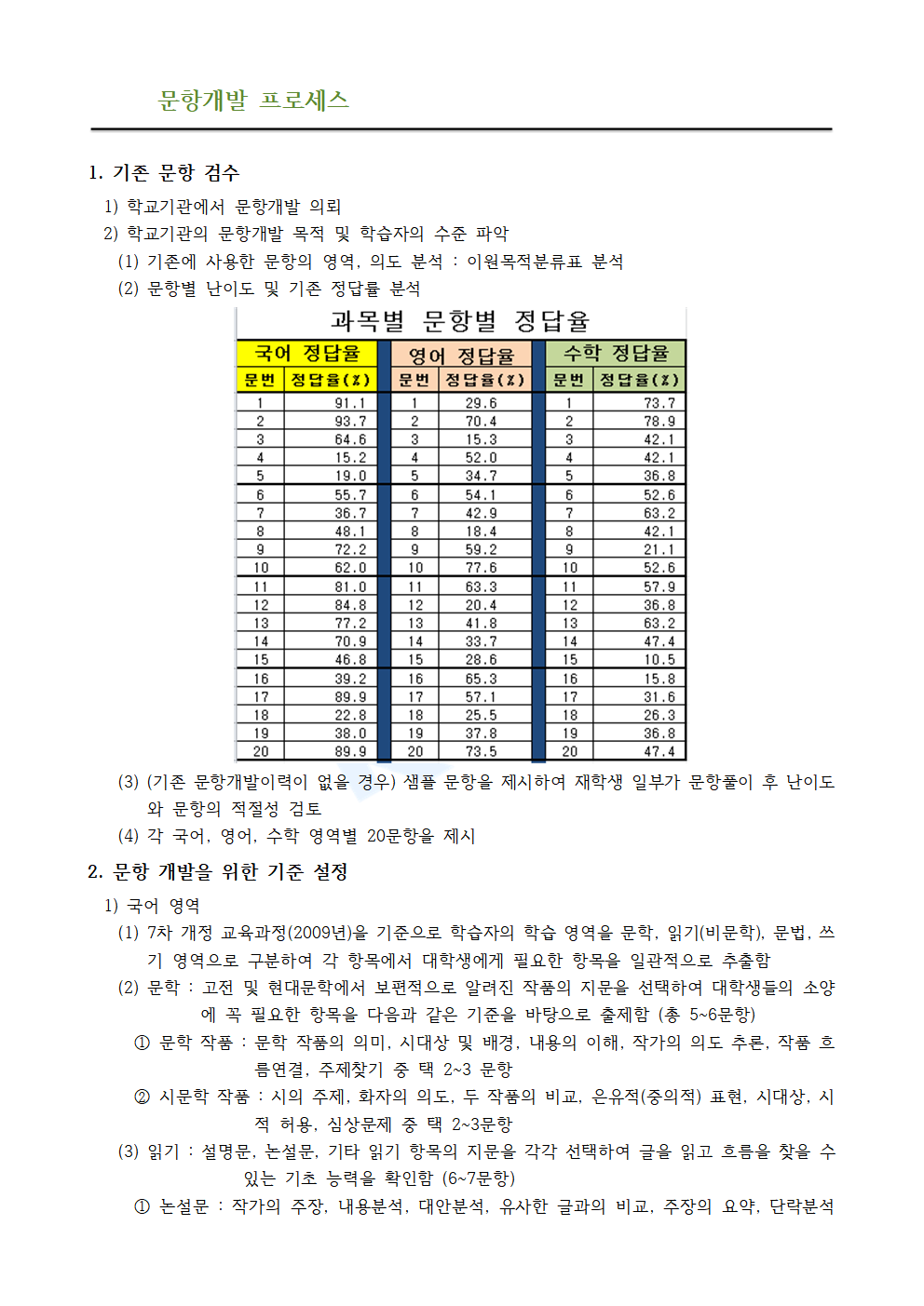 2016년도에 활용했던 전문대학 기초학습능력진단평가 문항개발용 프로세스입니다.
