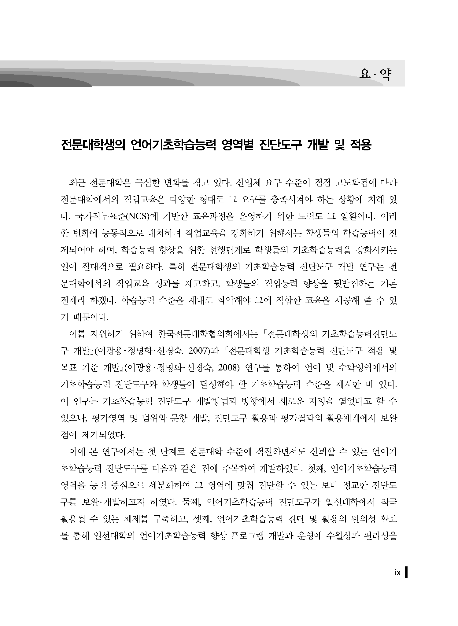본 자료를 토대로 전문대학생들의 기초학습능력 진단 평가를 실시하기 위한 문항 개발과 온라인 평가 사이트가 만들어졌습니다. 개발된 문항은 본 카테고리에 있으나, 공개하지 않습니다.