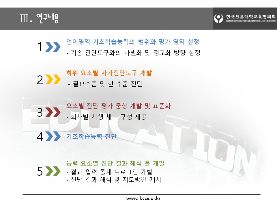 전문대학협의회에서 기초학습능력평가 언어영역 진단도구 개발을 하신 이광용 교수님(수원여자대학교)의