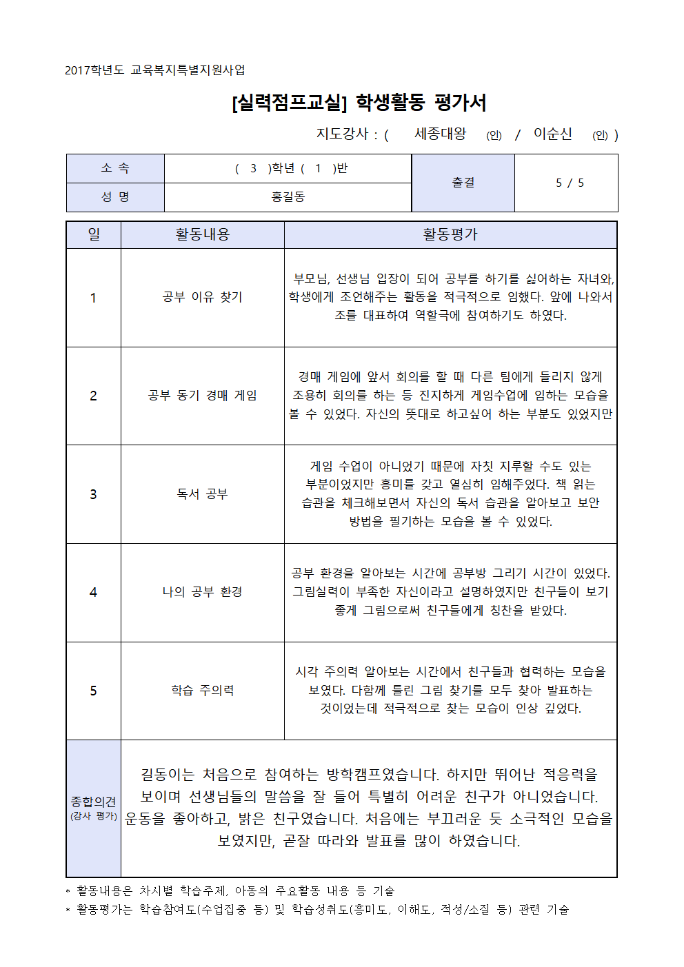 센터 및 기관 등에서 학생들 수업을 하고 나서 학생에 대한 진단, 처방을 기록하는