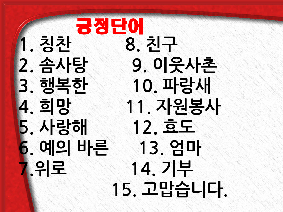 이번시간에는 우리모두 긍정의 커뮤니케이션을 할 수 있도록 배워봅시다!