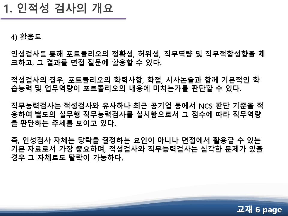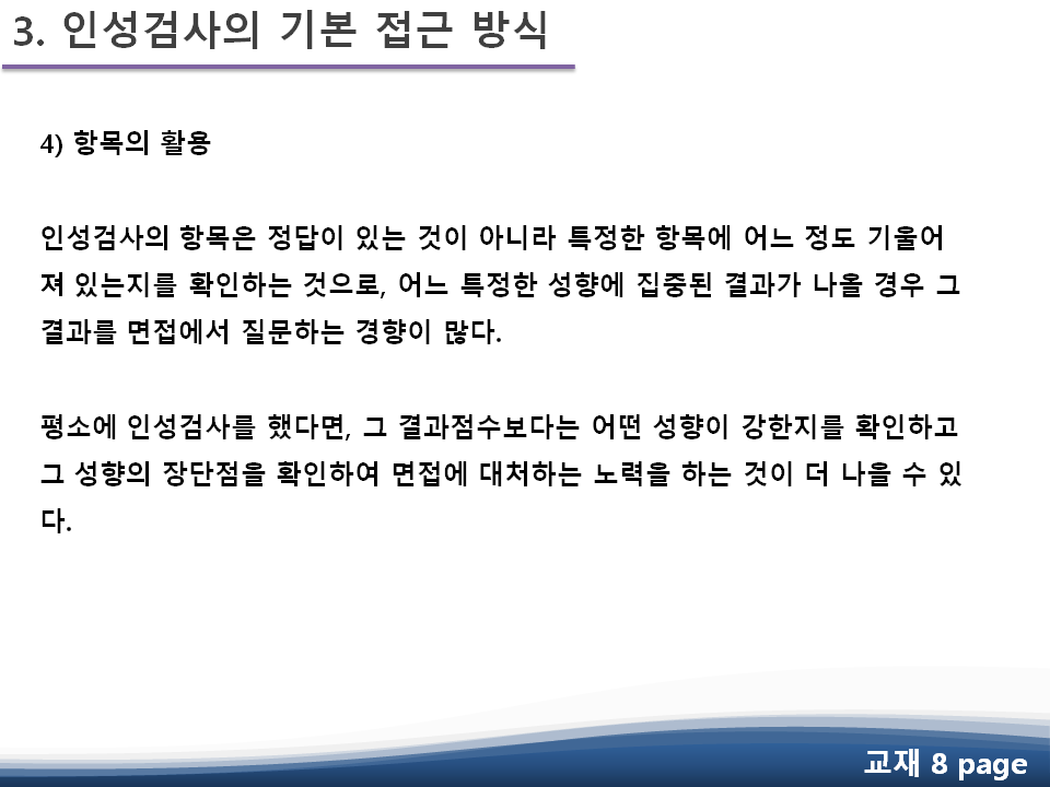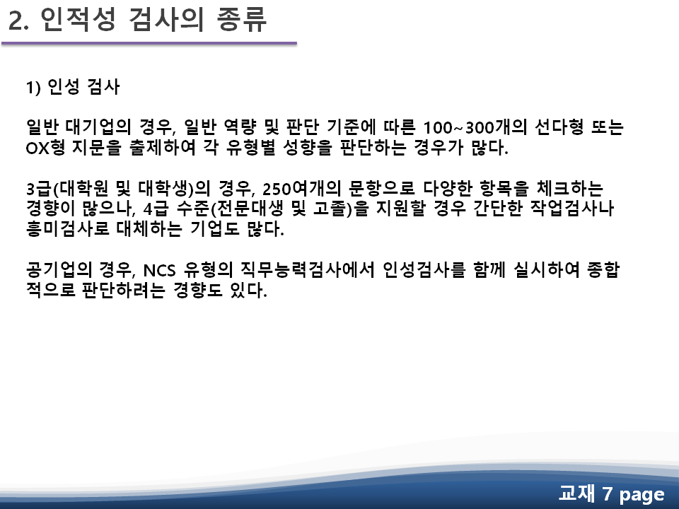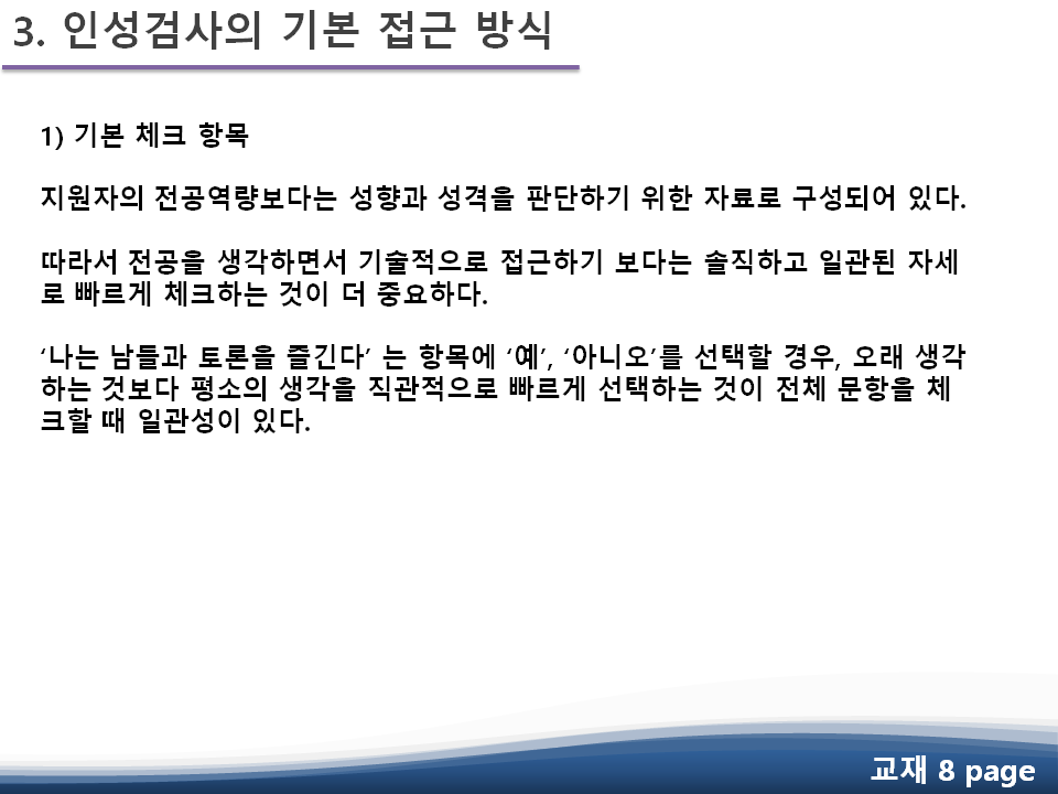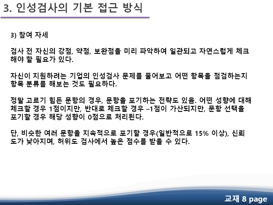 인성검사 프로세스의 이해에 대한 강의 자료입니다.