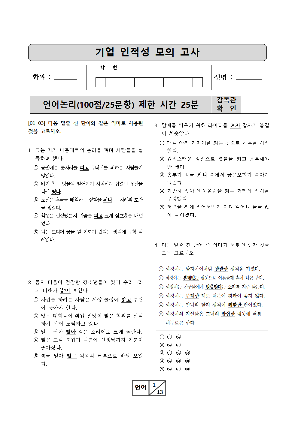 | 기업 인적성 모의고사 : 3교시 추리 (0) | 2019.06.25 |