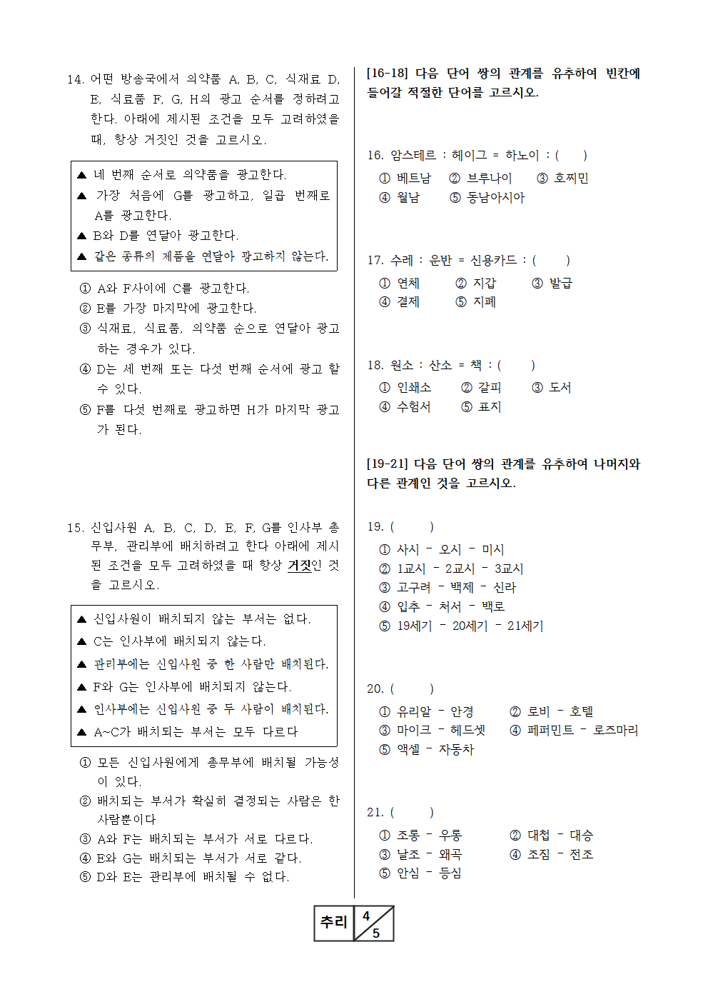 | 기업 인적성 모의고사 : 1교시 언어 (0) | 2019.06.25 |