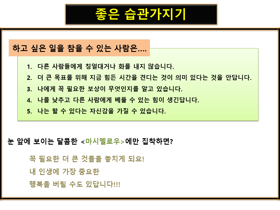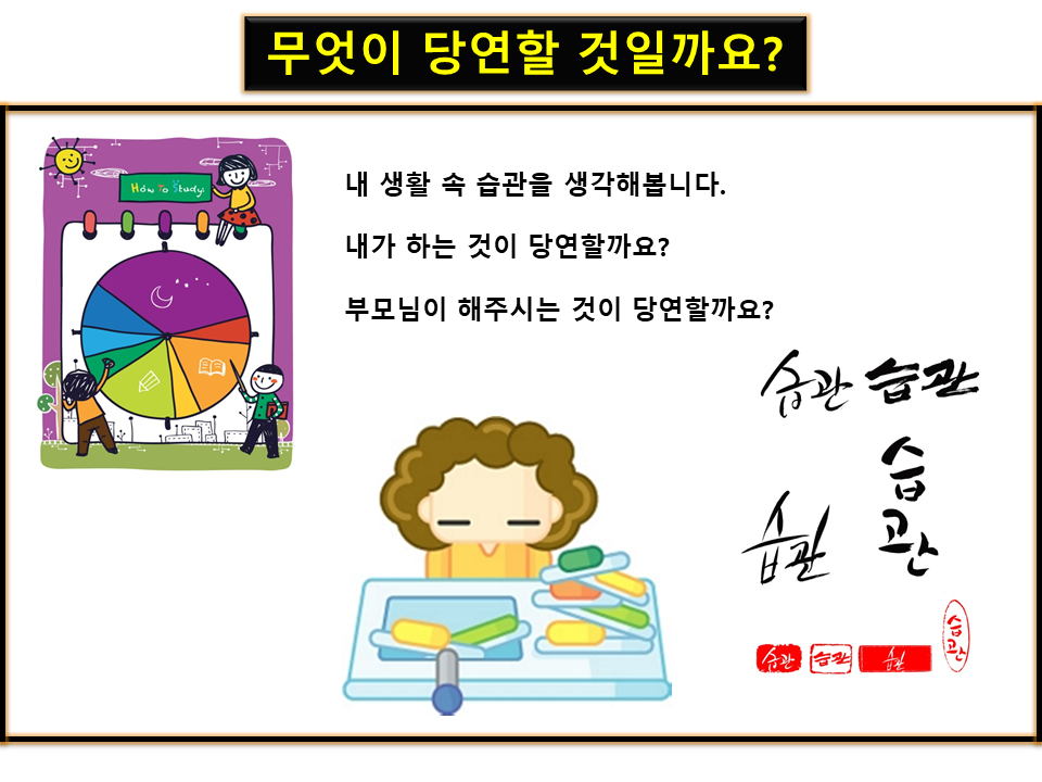 우리 아이들이 올바른 습관을 길들일 수 있도록 도움을 줄 수 있는 자료입니다