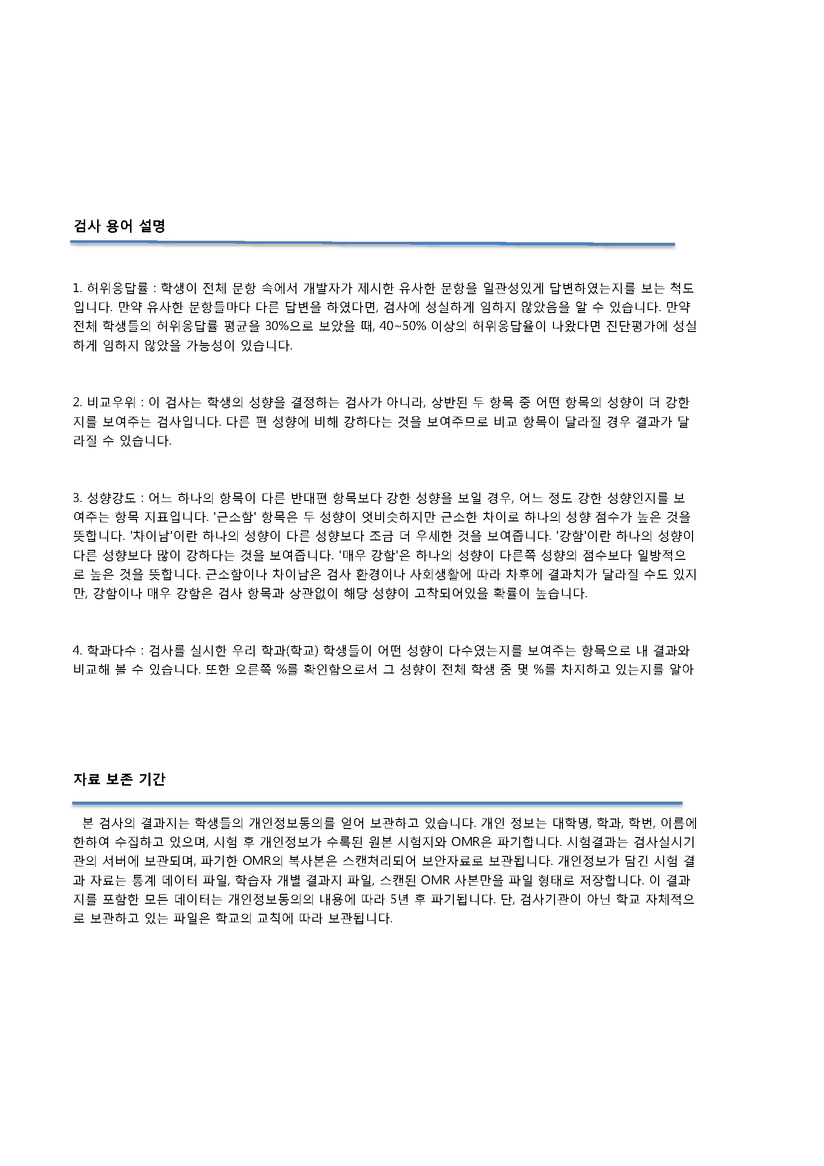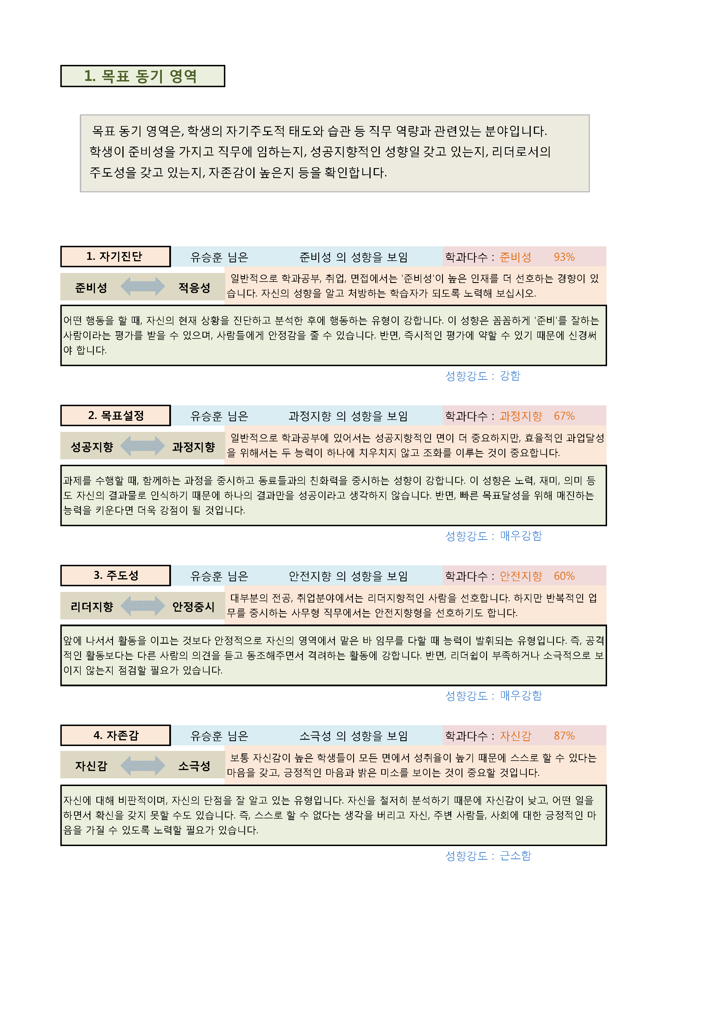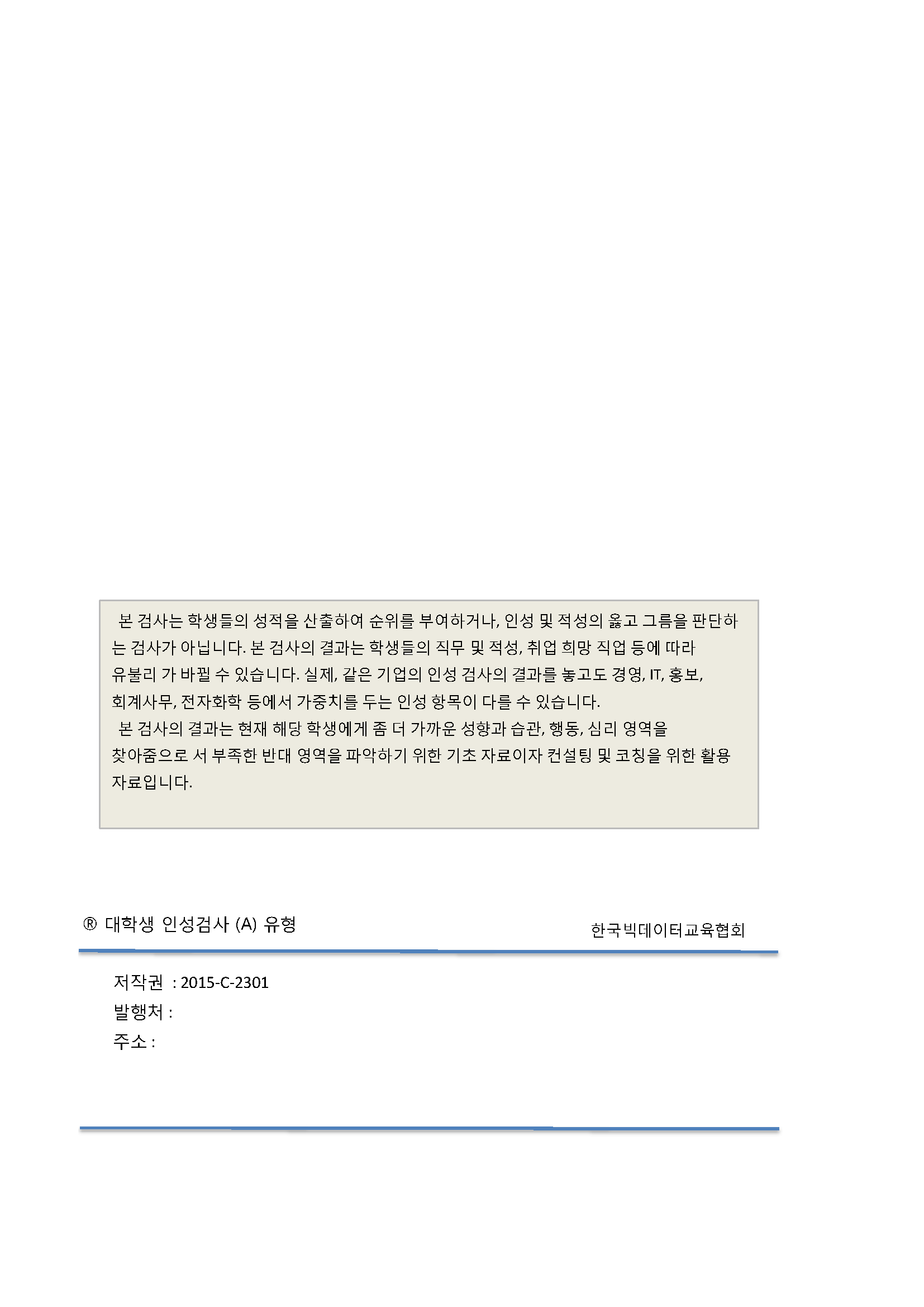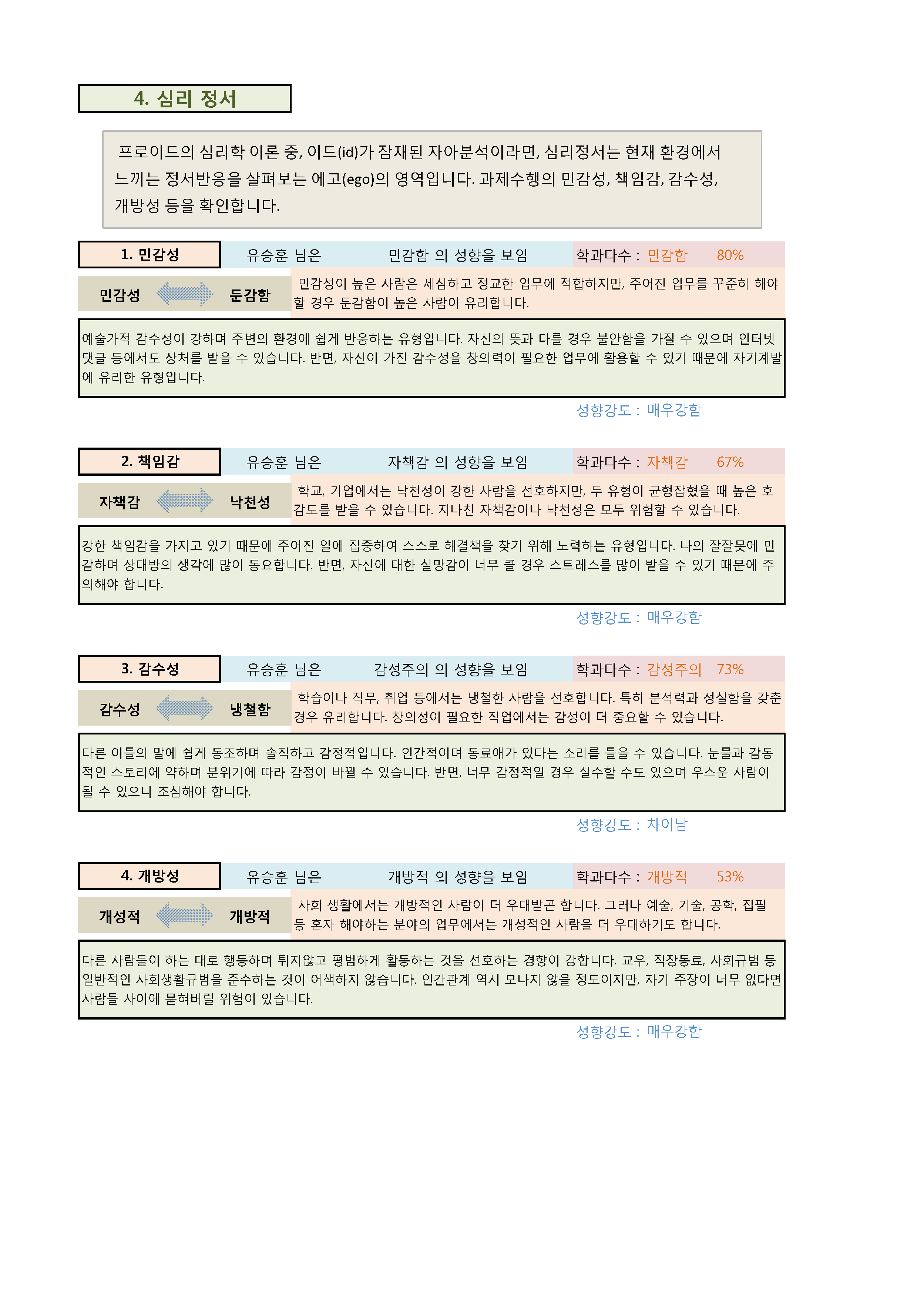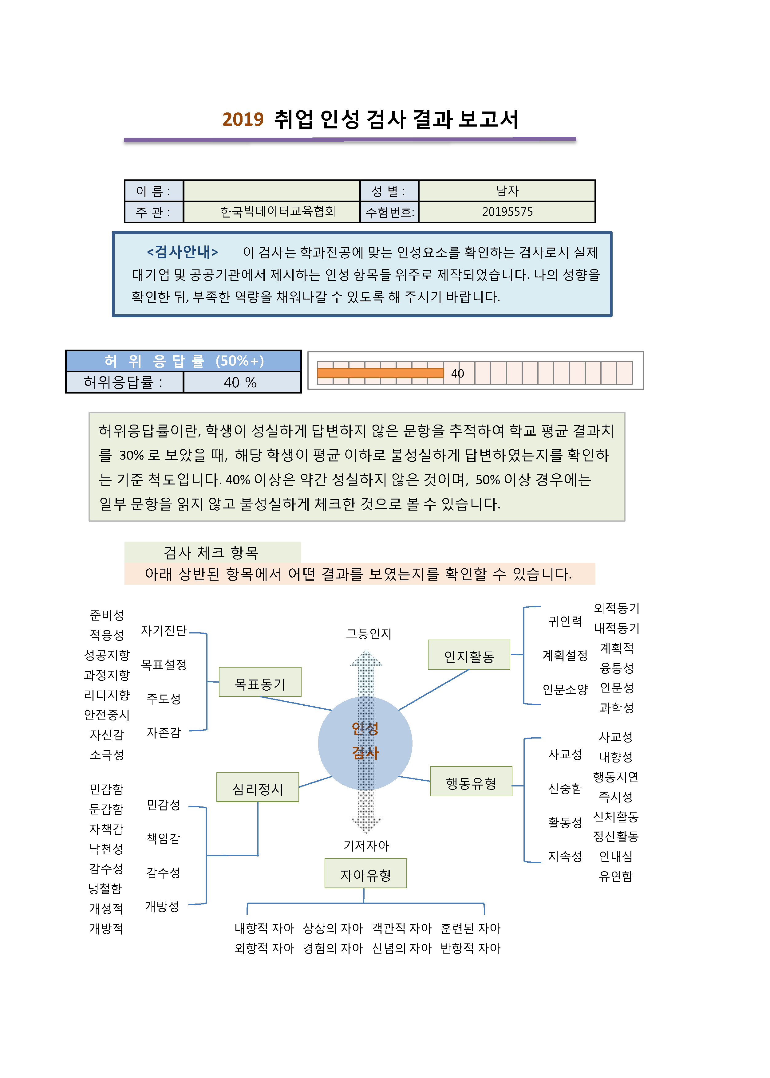 모의고사를 통해 자가판단용으로 활용할 수 있는 인성검사의 결과지를 올립니다.