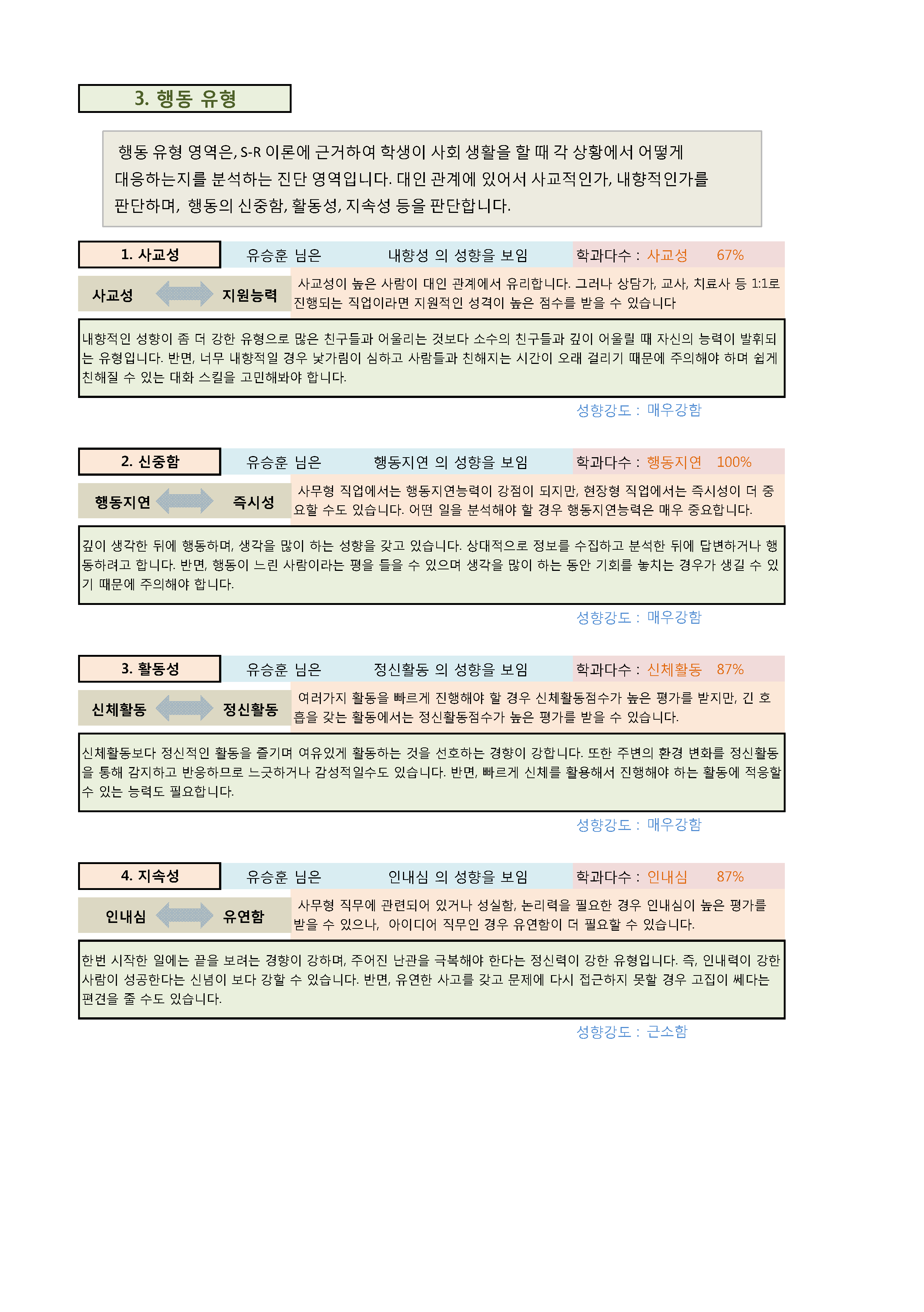 취업 인성검사 결과지 샘플입니다.