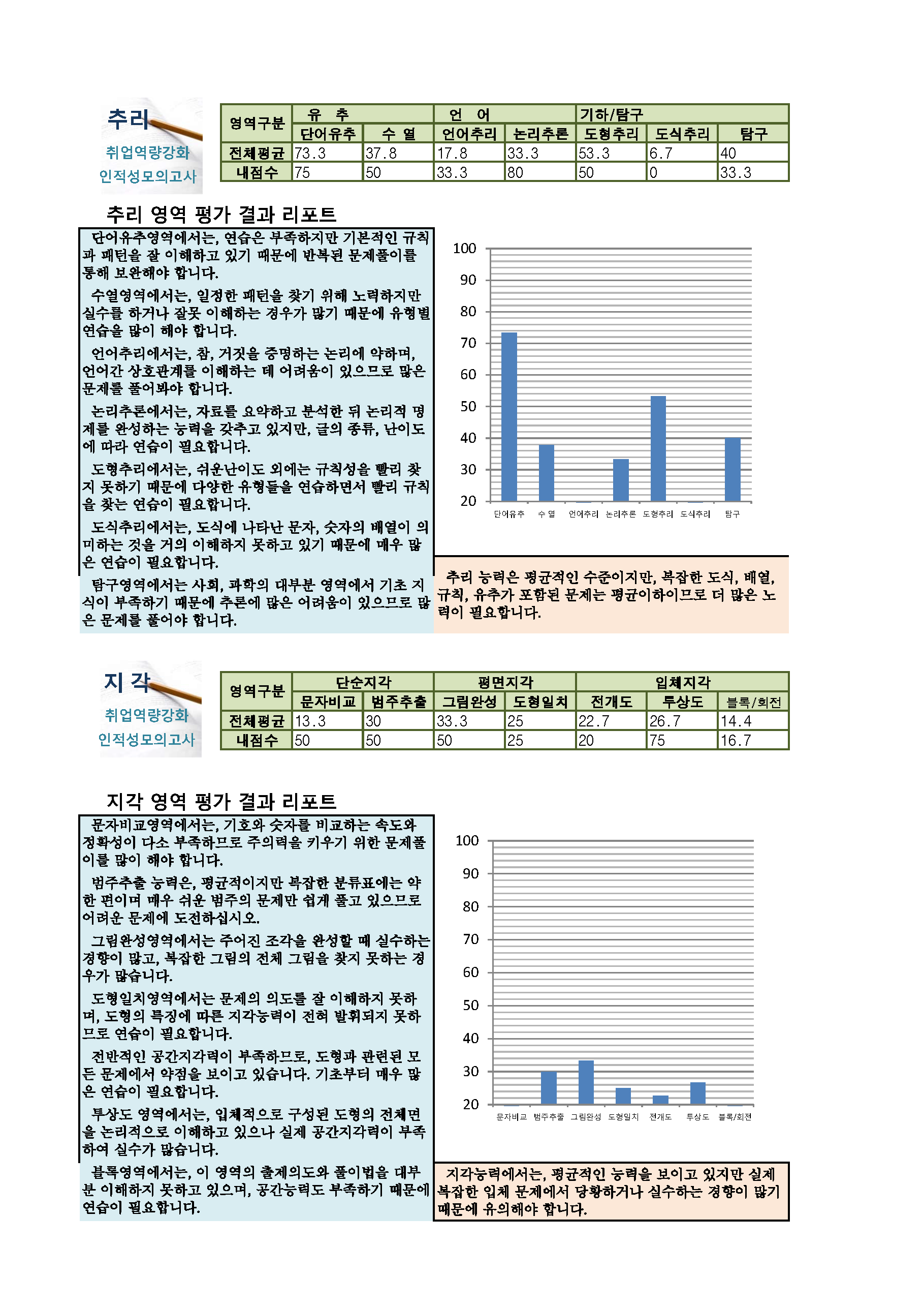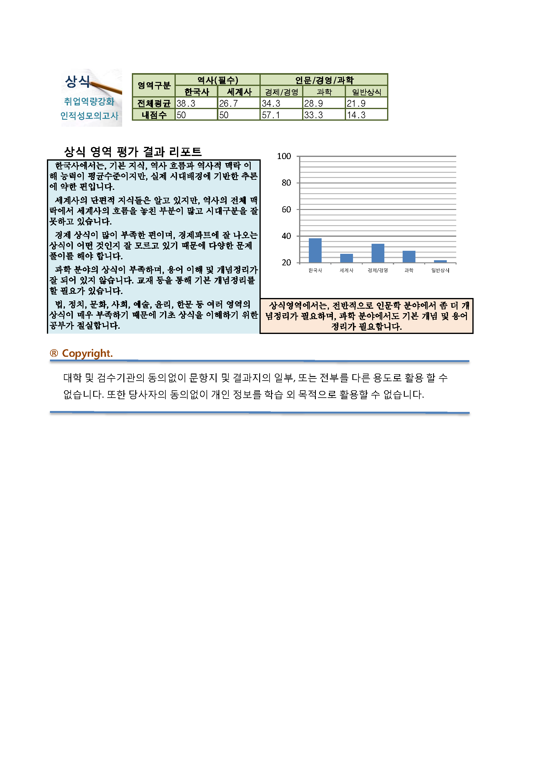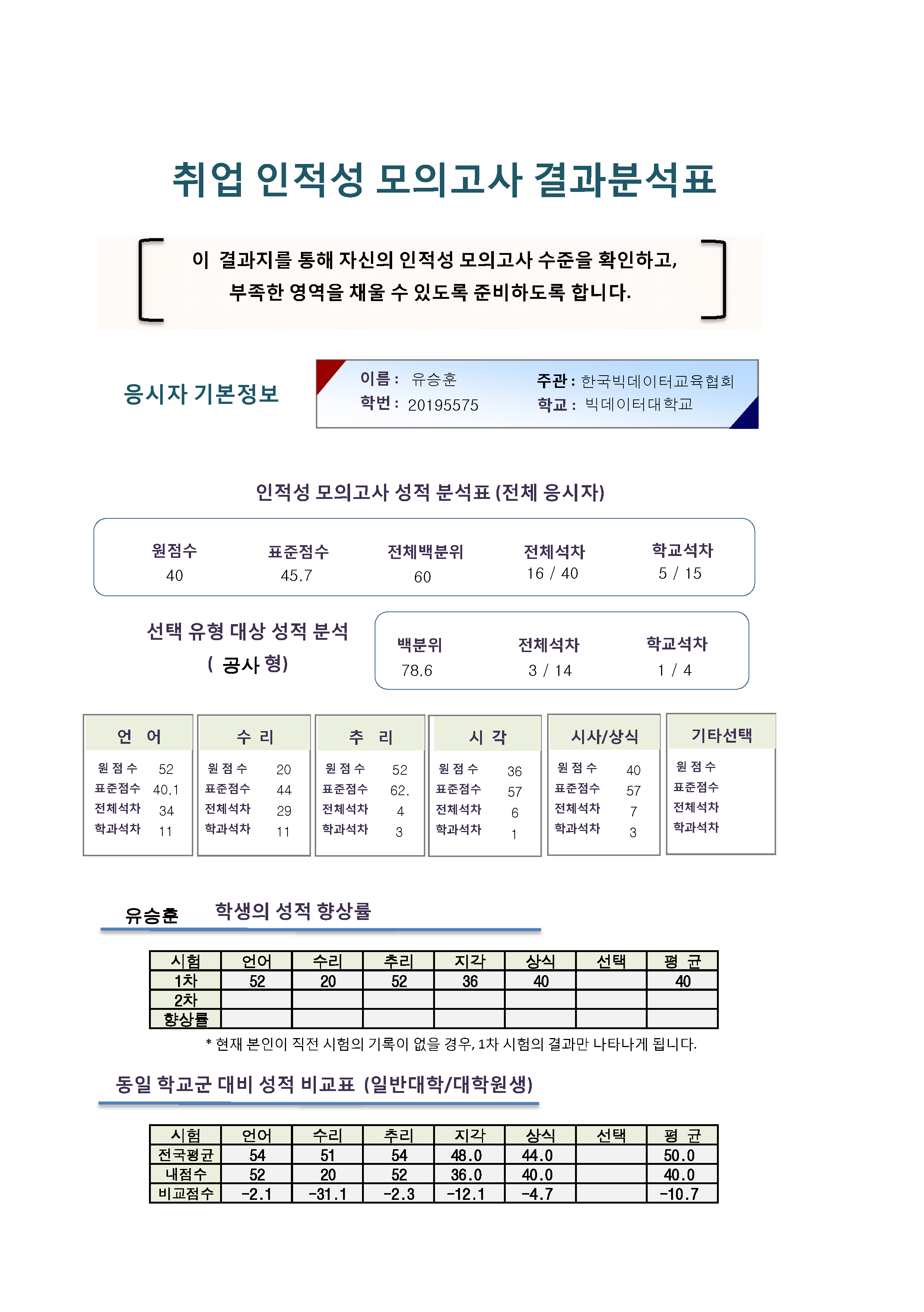 인적성 모의고사 후 개인에게 배부되는 결과지 양식입니다.
