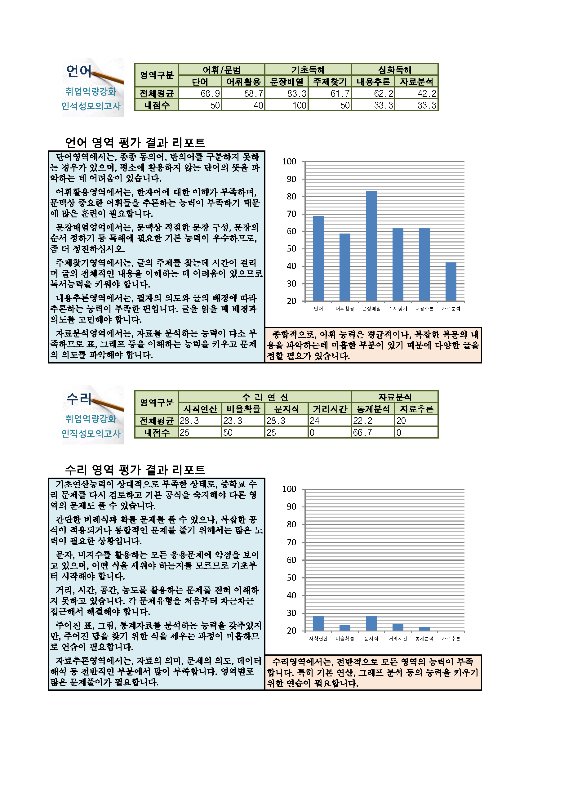 인적성 모의고사 후 개인에게 배부되는 결과지 양식입니다.