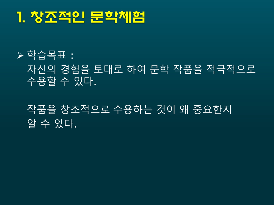 창조적인 문학활동 중 시를 통해서 상상력을 자극시켜 삶을 아름답게 글로 표현할 수 있는 시간을 가질 수 있습니다^^!
