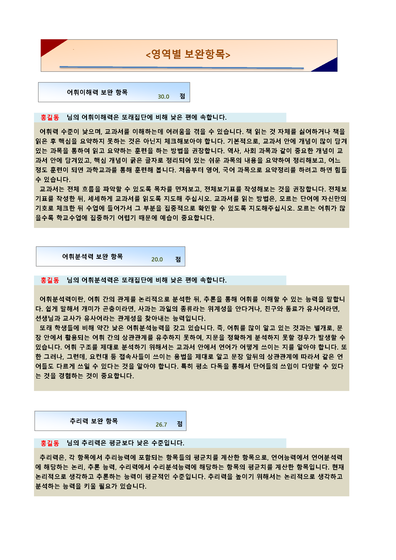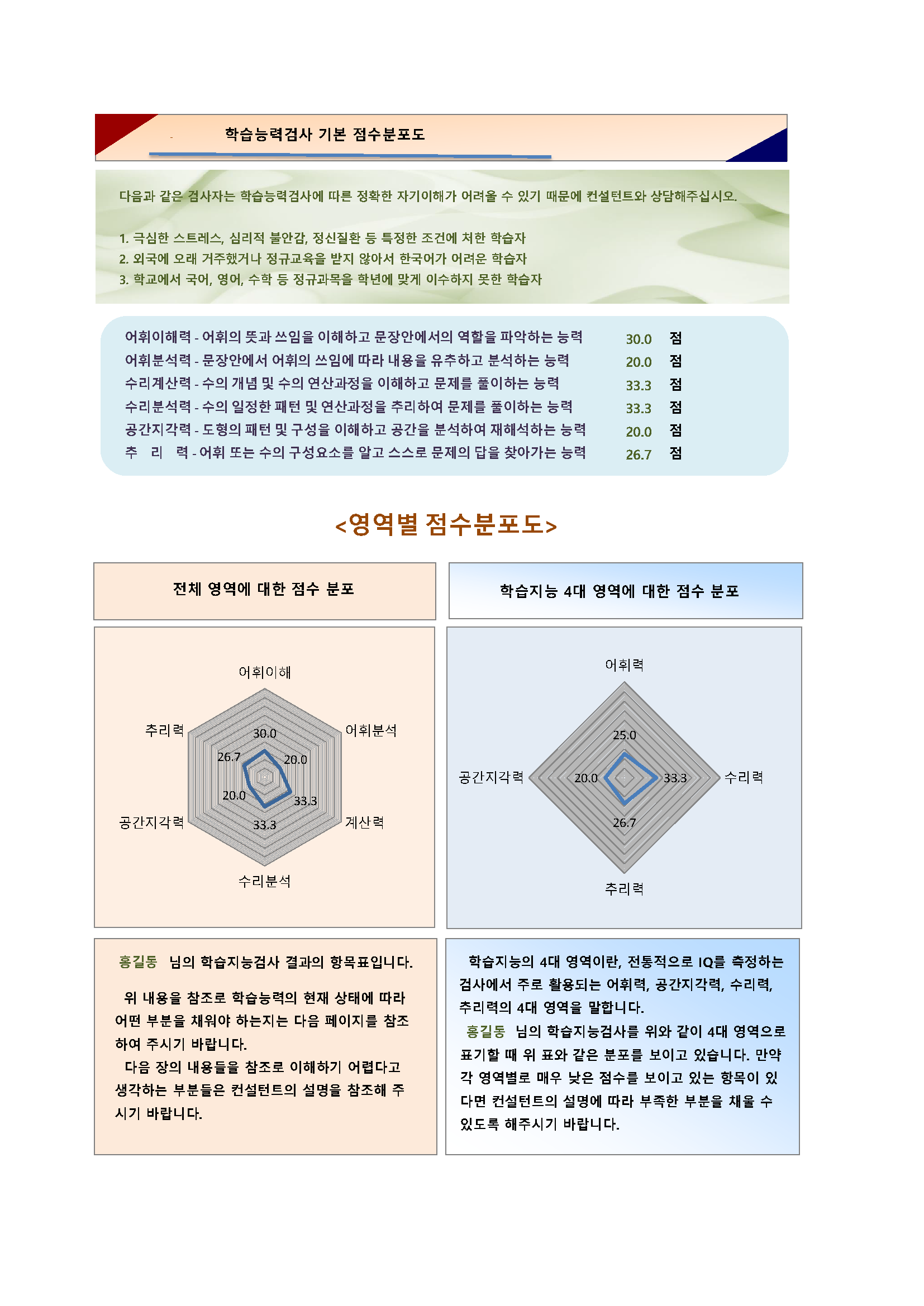 학교, 학과 수업에 활용할 수 있는 기본 데이터를 제공하는 검사를 말합니다.