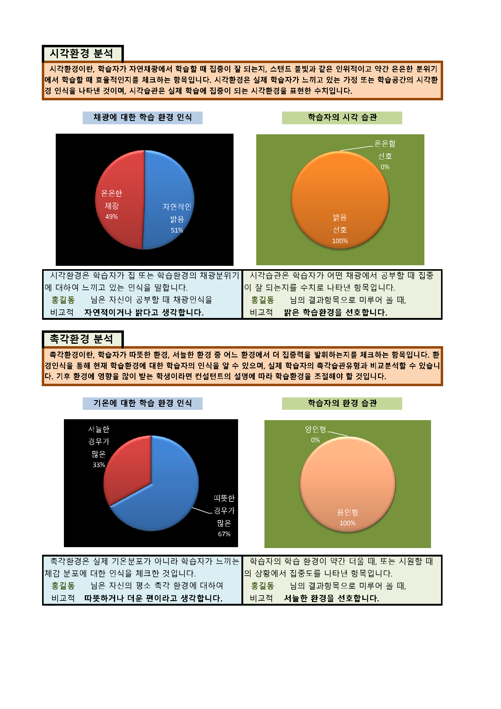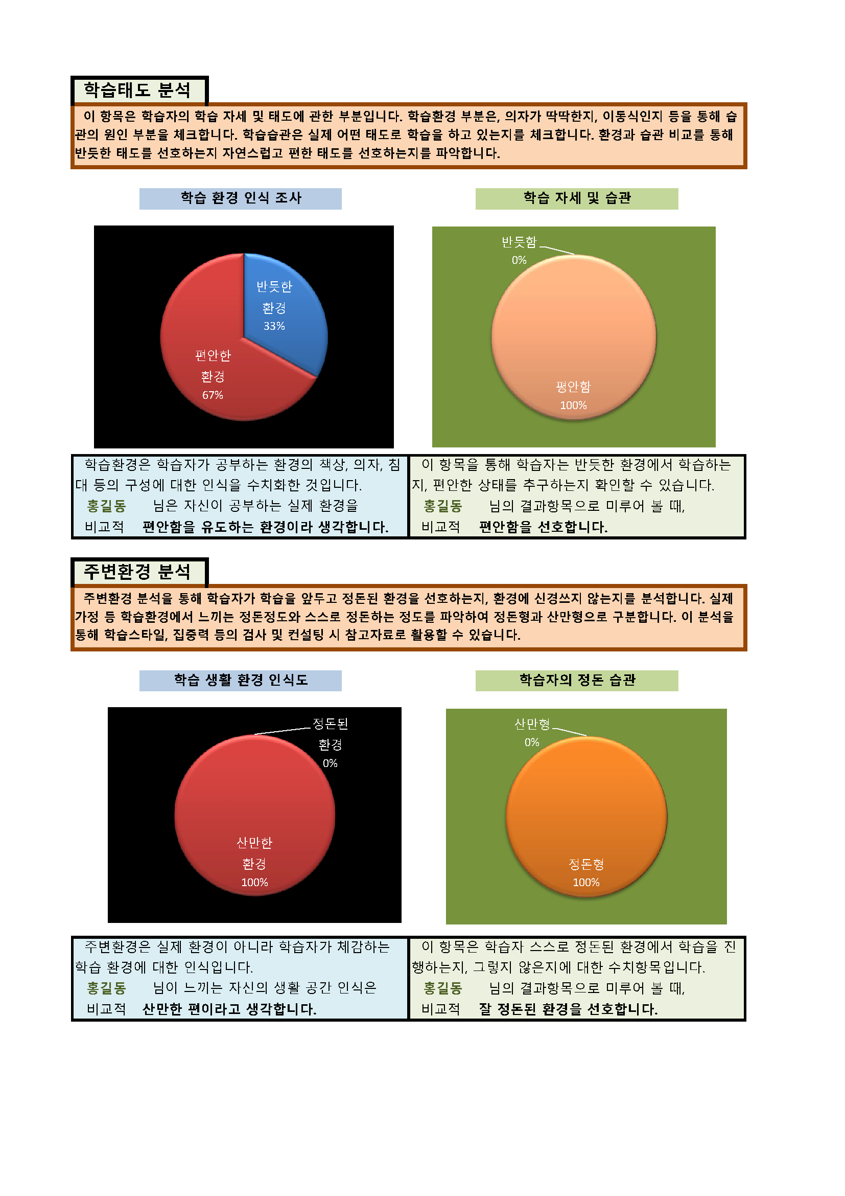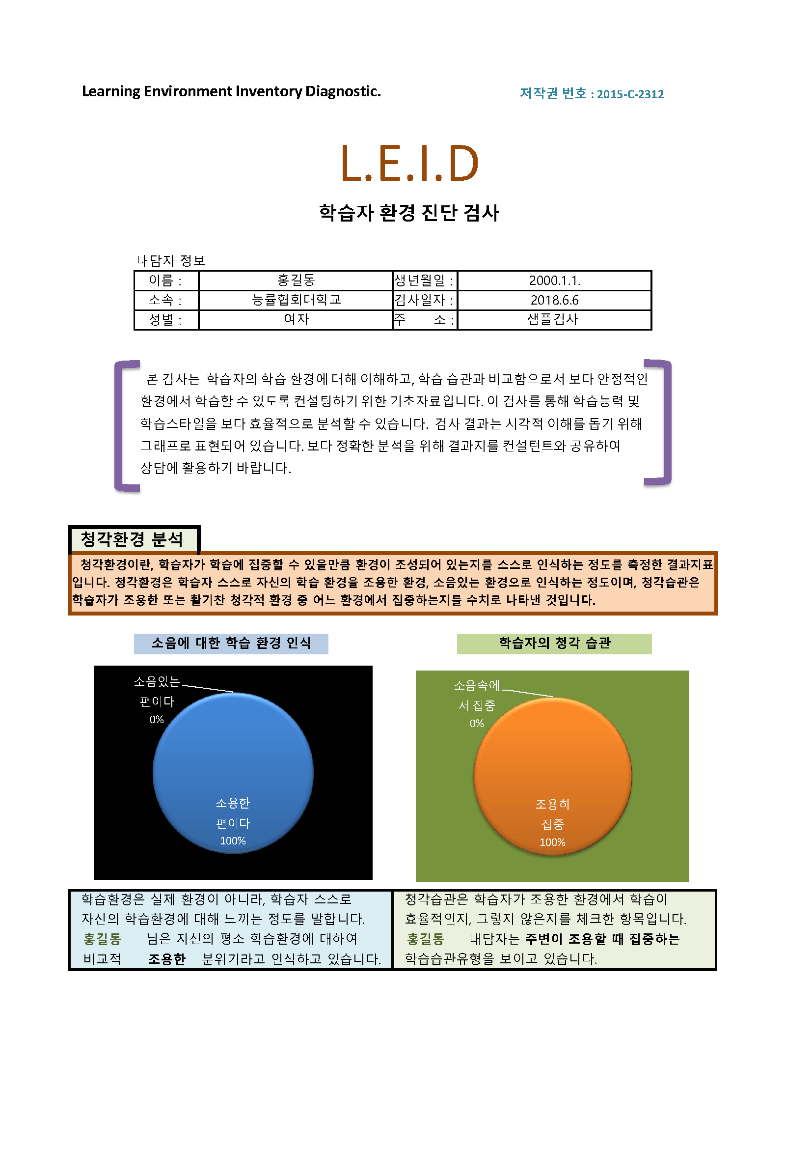 학습자 학습환경 진단 검사 결과지 샘플입니다.