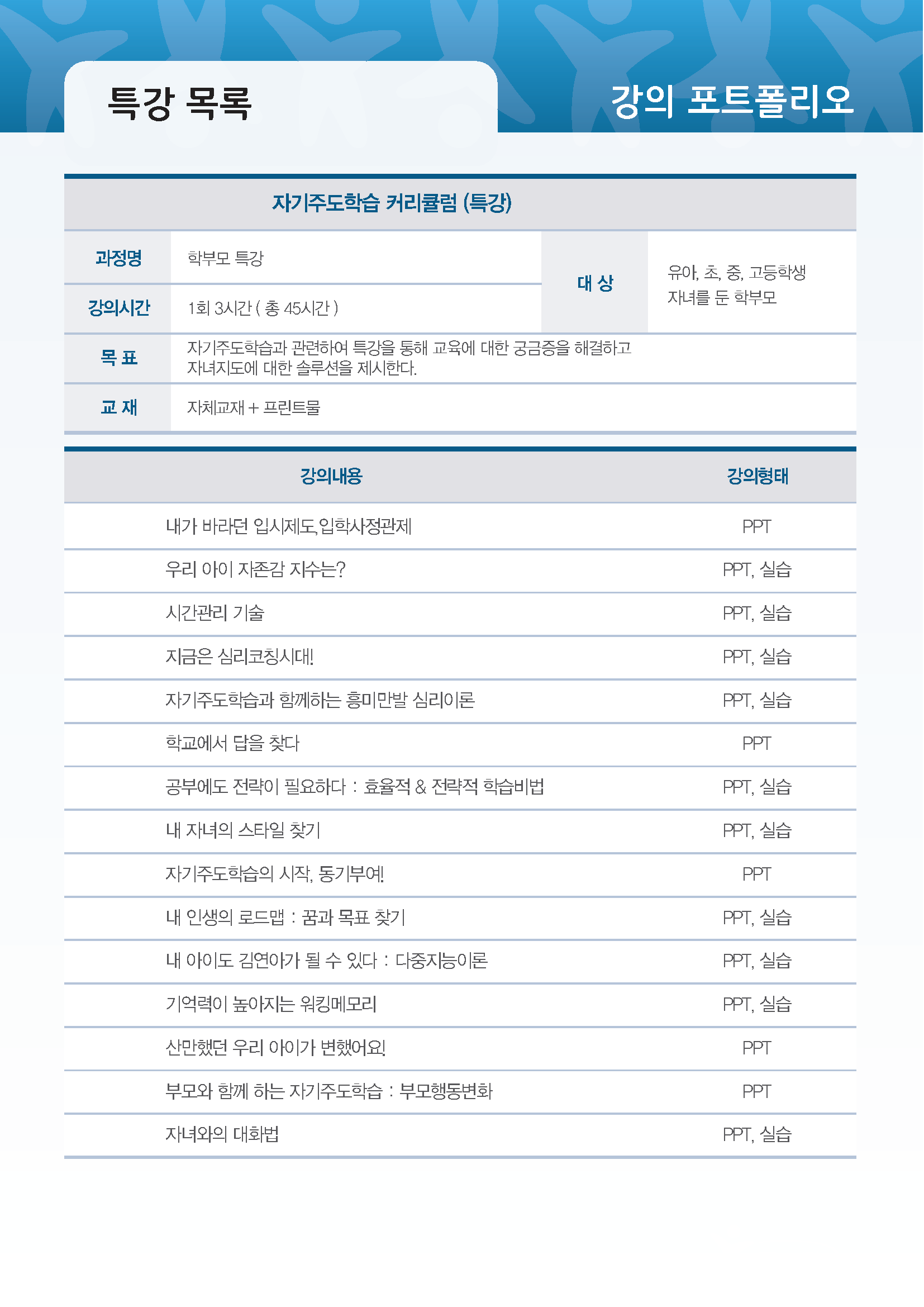 | 학부모, 성인, 교원 연수 프로그램 (0) | 2019.07.04 |
