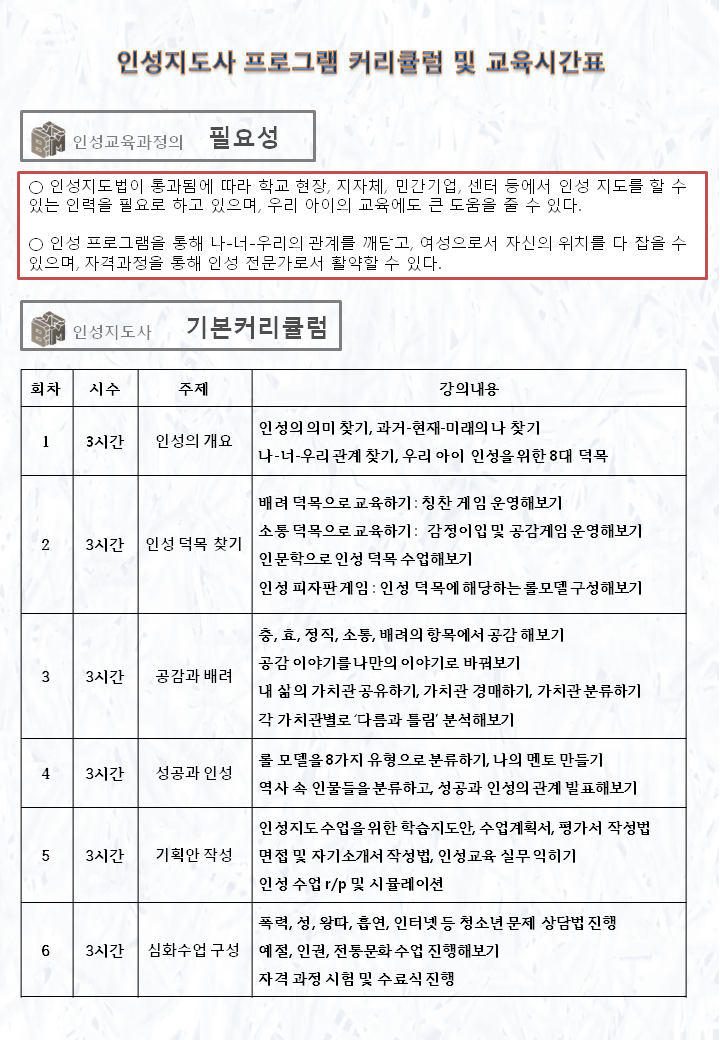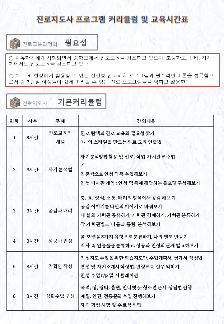 센터 프로그램 : 진로지도사, 인성지도사 프로그램
