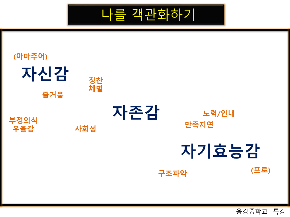 목표 설정을 위해 자신을 게임 속의 '캐릭터'로 수치, 수량화 해보고 자신을 레벨업 하기 위해 필요한 게임식 성장 과정에 대한 설명과 자기 수량화 법칙을 말씀해주셨습니다.