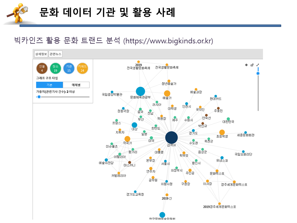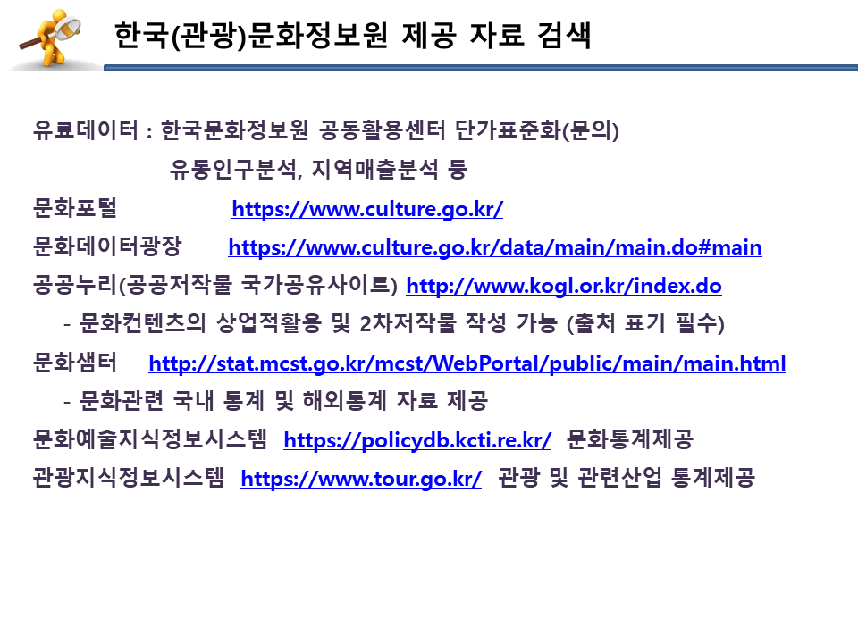 문화데이터에서 자료 활용이 가능한 다양한 사이트들의 활용법을 알려주셨어요.