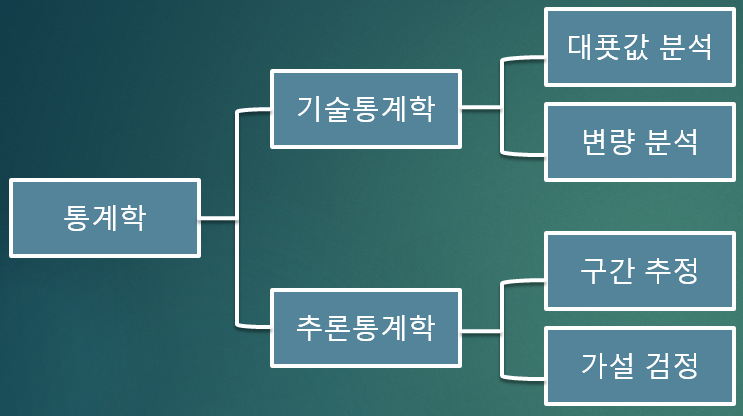 일반적으로 통계학은 기술(技術)통계학과 추론(推論)통계학으로 나눌 수 있답니다.