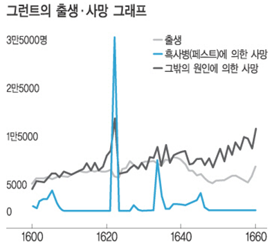 그런트는 17세기 재발한 흑사병을 통계내면서 과연