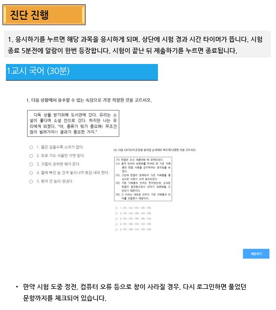 오늘은 대학교에서 진행하는 기초학습능력진단 평가 및 직업기초능력 진단을 온라인으로 진행하는