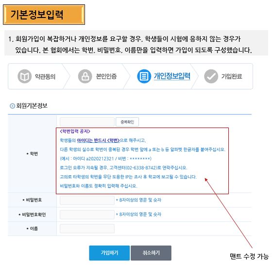 회원 가입은 아이디를 학번으로 하고, 비번만 넣으면 끝~