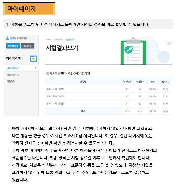 시험이 끝나면 바로 자신의 성적 결과를 확인할 수 있습니다.