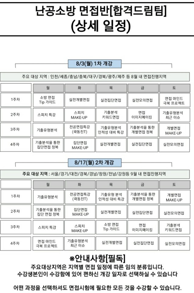 2회차 개강으로 각각 4주간 일정으로